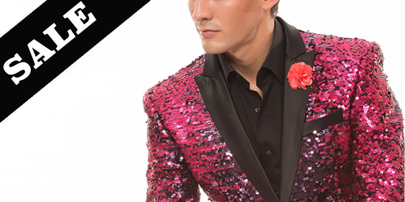 section you'll find a lot of different options that are sure to set you apart from your fellow students at prom. Now, there is nothing wrong with wearing a basic black tuxedo to prom, but if you decide to go the classic route make sure you get one that fits you perfectly and that you tailor it to your own body type once you get it, so you can look better than all the guys at prom who are wearing il-fitting rental tuxedos instead of buying and tailoring a tuxedo online. Current trends for prom include paisley and sequin dinner jackets in all different colors and patterns, usually matched with black pants. We suggest getting a color that will coordinate with your prom dates dress. Or you can try any other color tuxedos