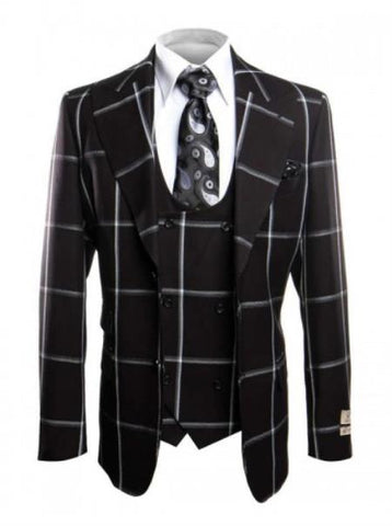 Men's 2 Button Black Slim Fit 3 Piece Suits