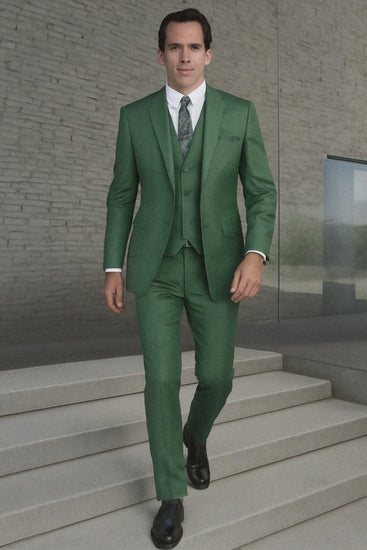 Mens 2 Button Slim Fit Vested Wool Suit in Forest Green
