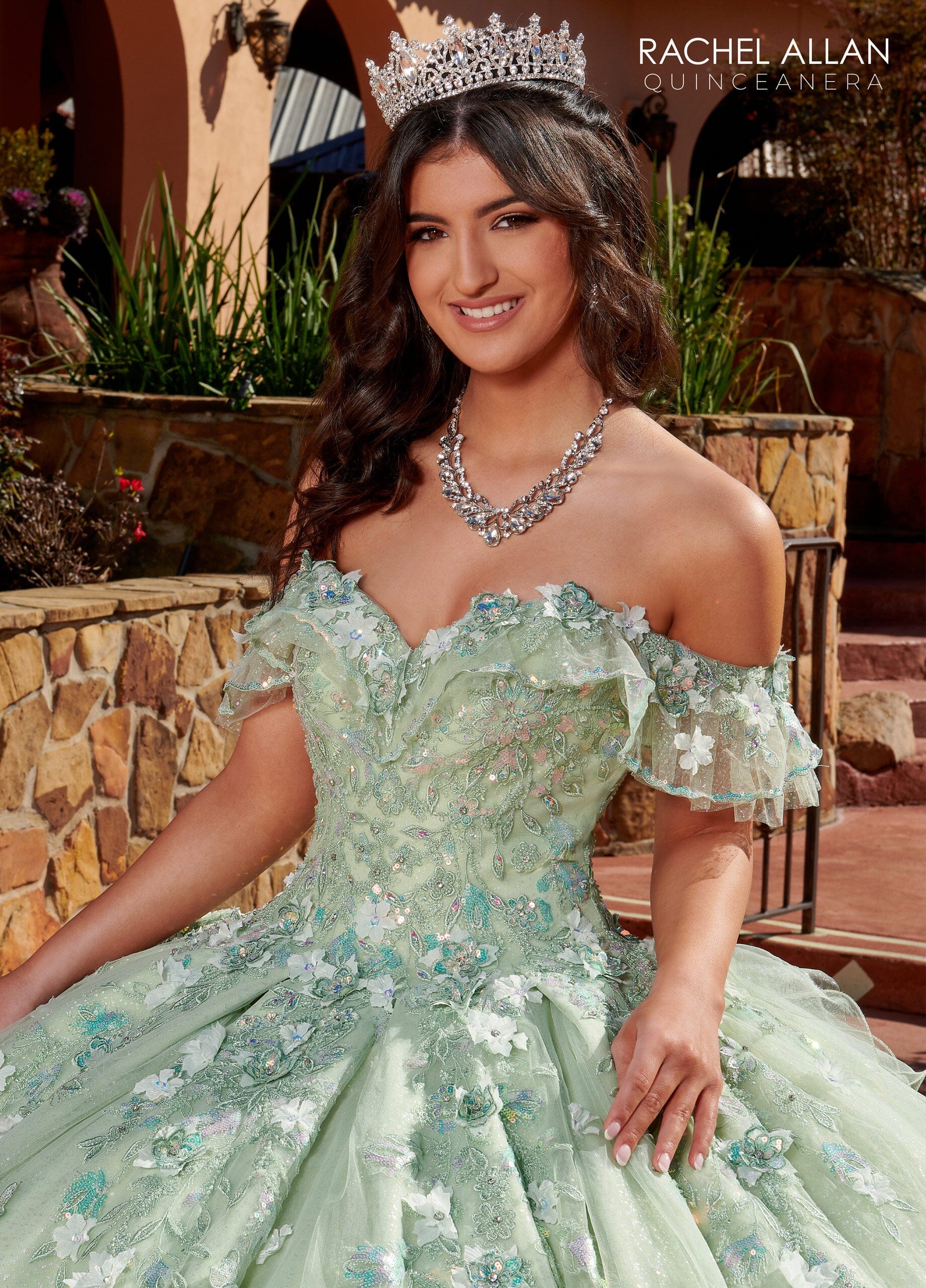 Rachel Allan RQ3120 3D Floral Off Shoulder Quinceanera Dress