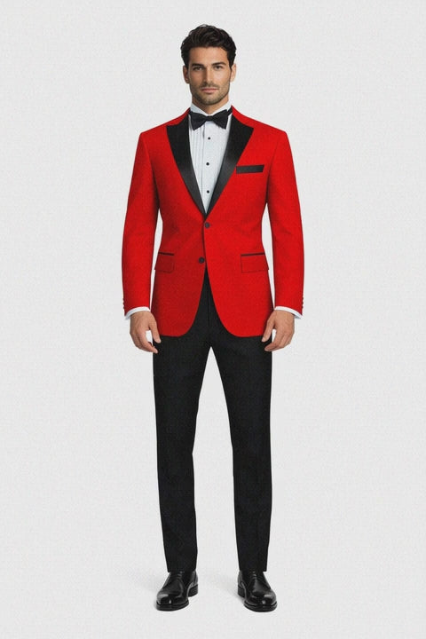 Blazer - Dinner Jacket - Red and Black Lapel Mens Classic 2 Button Notch Lapel Red Tuxedo