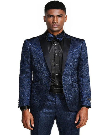 Blue Wedding Tuxedo - Men's One Button Slim Fit Paisley Wedding & Prom Navy Blue Tuxedo