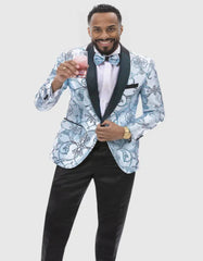 Blue Wedding Tuxedo - Mens Wide Brocade Pattern Prom Aqua blue Dinner Jacket Tuxedo