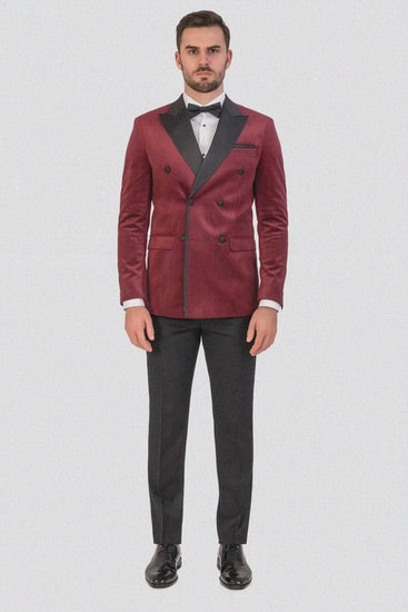 Burgundy Velvet Double Breasted Tuxedo Jacket Wedding & Prom
