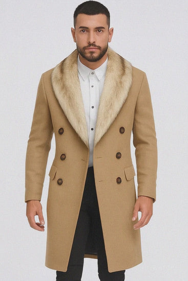 Exude timeless sophistication with this Men’s Camel Hair Overcoat, a luxurious statement piece crafted for those who appreciate refined fashion and impeccable tailoring. Designed from a premium wool and cashmere blend, this double-breasted peacoat combines warmth, softness, and enduring elegance — elevated by a rich fur collar that adds a touch of luxury to your winter wardrobe.