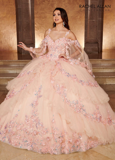 Rachel Allan RQ3103 Cape Sleeve Tiered Quinceanera Dress