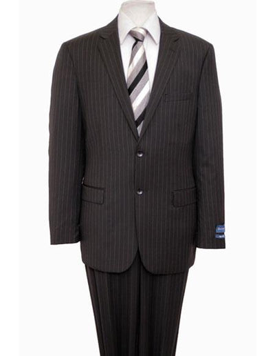 Designer Affordable Inexpensive Men's Classic Wool Pinstripe Black Suit Flat Front Pant
