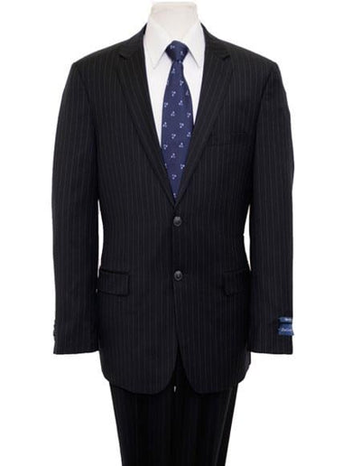 Designer Affordable Inexpensive Men's Pinstripe Classic Dark Navy Suit Flat Front Pant