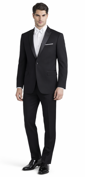 Mens Designer Jackson Peak Lapel Wedding Tuxedo in Black