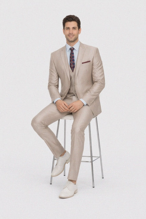 Upgrade your formal wardrobe with the sophisticated elegance of the Men’s Tazio Vested Slim Fit Shiny Sharkskin Suit in Champagne, a refined three-piece suit designed for men who appreciate modern tailoring, standout style, and premium detailing. Perfect for weddings, proms, formal events, business functions, and special occasions, this suit delivers a polished look that blends classic structure with contemporary flair.