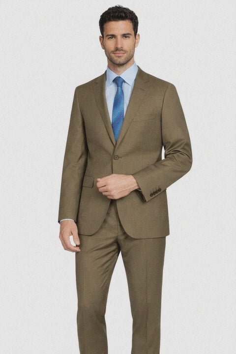 The Mantoni Camel or Taupe Two-Button Wool Suit is a refined statement of modern elegance and versatile tailoring. Crafted from high-quality wool, this suit offers a smooth texture, natural breathability, and a structured drape that maintains a polished appearance throughout the day. The warm camel and taupe tones provide a sophisticated alternative to traditional dark suits, adding character while remaining understated and professional. Designed with a classic two-button jacket and a tailored silhouette, the suit enhances the shoulders and creates a clean, confident profile. Its versatile color palette makes it easy to dress up or down, whether worn as a full ensemble or styled as separates. Comfortable, durable, and stylish, the Mantoni Camel or Taupe Wool Suit is an excellent choice for the modern gentleman seeking subtle distinction.