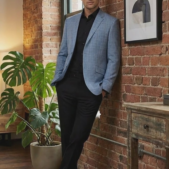 An ideal choice for grooms, wedding guests, office professionals, and men seeking refined party and formal wear, this light blue checkered blazer is a must-have addition to any modern men’s collection.
