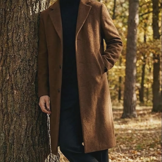 Men’s Brown Overcoat, Long Winter Coat for Men, Classic Men’s Wool Coat, Tailored Overcoat, Formal Winter Coat, Men’s Long Coat