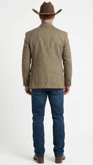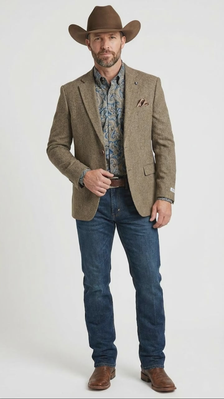 Men’s Brown Taupe Western Blazer Jacket – Classic Cowboy Style Sport Coat for Wedding