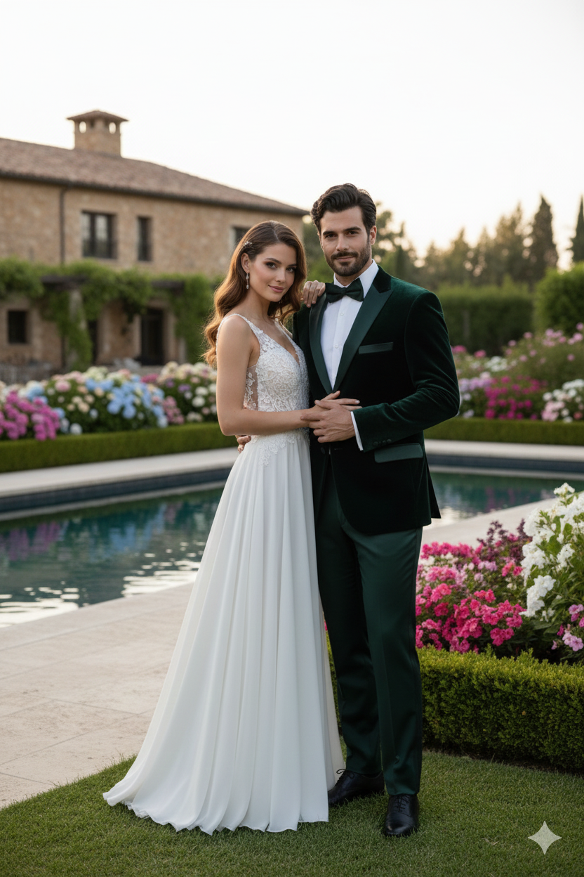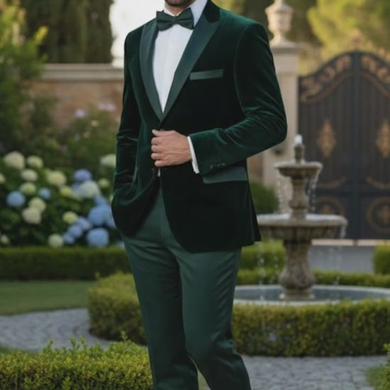 Premium dark green velvet tuxedo jacket