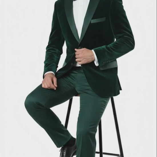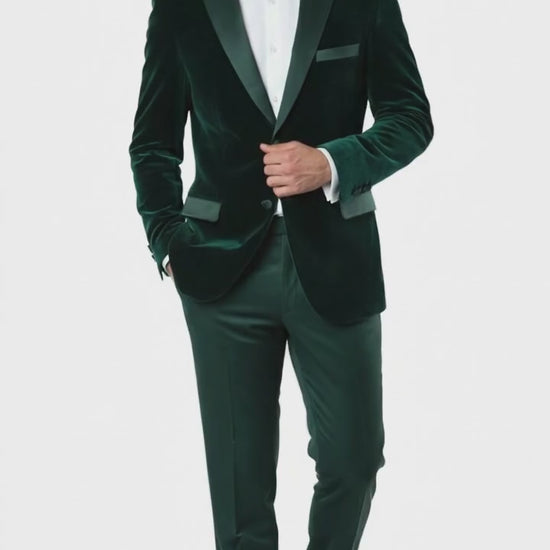 Mens Dark Green Velvet Tuxedo Dinner Jacket Slim Fit Formal Blazer with Satin Peak Lapel Lape