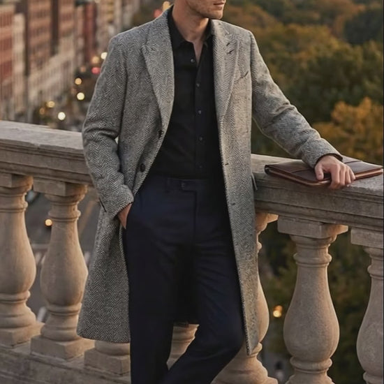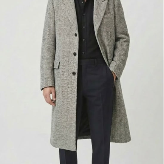 Ideal for office wear, business meetings, evening occasions, and winter outings, this herringbone overcoat is a staple piece for the modern gentleman.