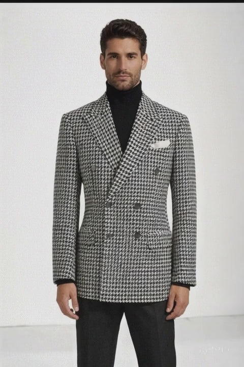 Elevate your wardrobe with this Men’s Houndstooth Sport Coat, a timeless black-and-white essential crafted from 100% premium wool for superior comfort, warmth, and durability. Featuring the iconic houndstooth pattern, this sport coat blends classic sophistication with a clean, modern silhouette—perfect for the man who values refined style and versatility.