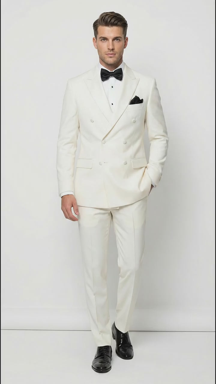 Men’s ivory Cream Double Breasted Suit – Classic Formal Tuxedo Style Suit for Weddings off White Color
