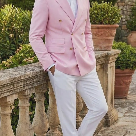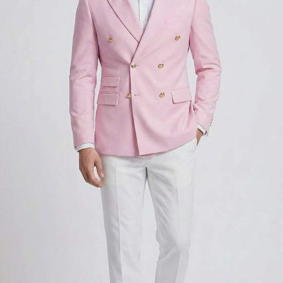 Ideal for grooms, wedding guests, and men seeking elegant party wear, this light pink double breasted blazer is a versatile and stylish addition to any formal wardrobe.