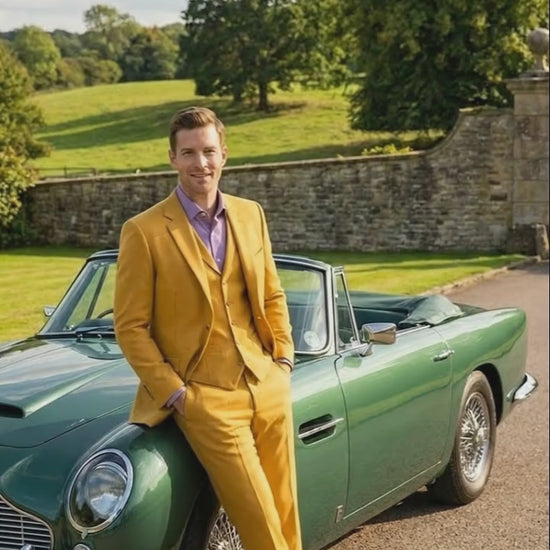 Make a confident and stylish statement with this men’s mustard yellow three piece suit, designed for modern elegance and standout formal wear. Expertly tailored in a Modern fit silhouette, this premium suit set includes a structured blazer, matching waistcoat, and tailored trousers for a sharp and polished appearance.
