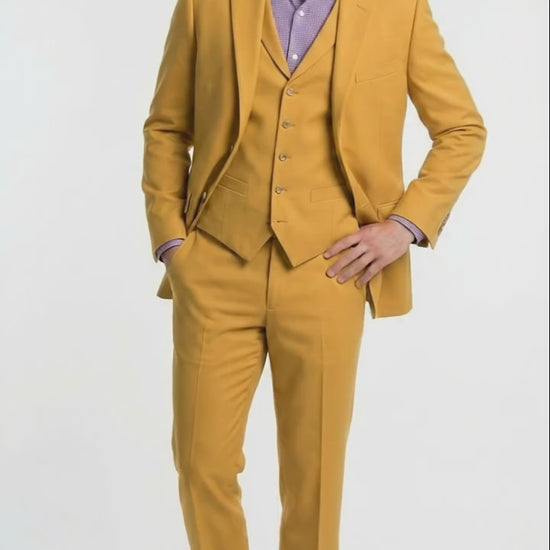 Mens Mustard Yellow Three Piece Suit | 2 Button Notch Lapel Modern Fit in Gold Color - Church Suit