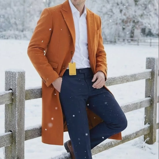 Upgrade your winter wardrobe with this Men’s Orange - Rust Wool Blend Long Overcoat, designed for timeless style and everyday sophistication. The warm camel tone offers a classic, versatile look that pairs effortlessly with both formal and smart-casual outfits.