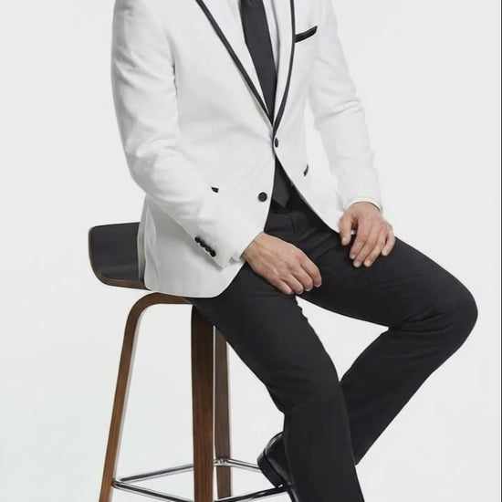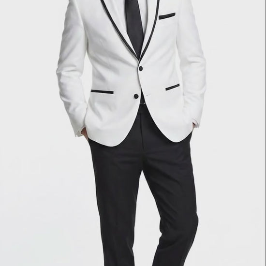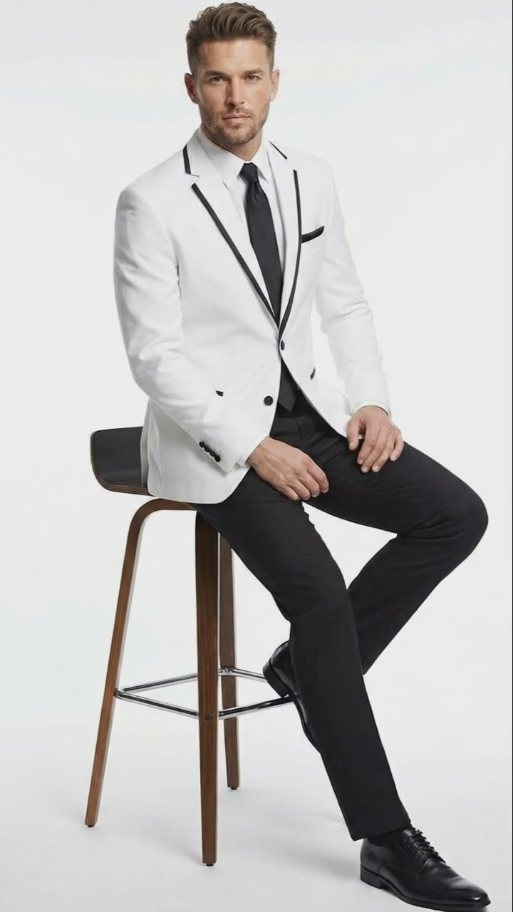Men’s White Blazer with Black Trim | Wedding and Party Formal Blazer Jacket - White Tuxedo Prom Jacket