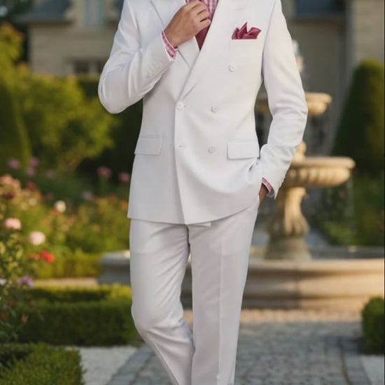Make a bold and elegant statement with this men’s white double-breasted 3-piece suit set, crafted for premium formal occasions and refined styling. This suit features a sleek, structured silhouette made from high-quality blended fabric, ensuring comfort, durability, and a clean, polished appearance. The crisp white color delivers a striking, sophisticated look ideal for weddings, evening events, celebrations, and upscale social gatherings.