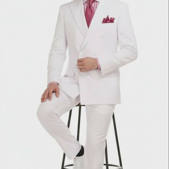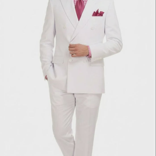 Mens White Double-Breasted 3-Piece Suit Set Premium Tailored Fit Formal Wedding and Evening Suit