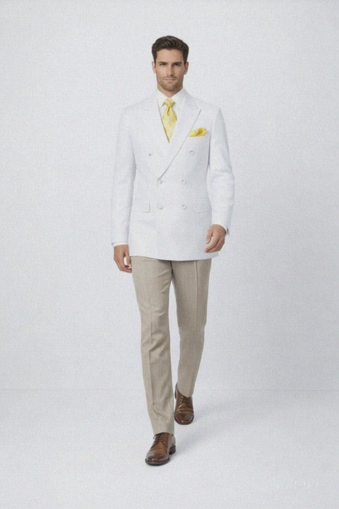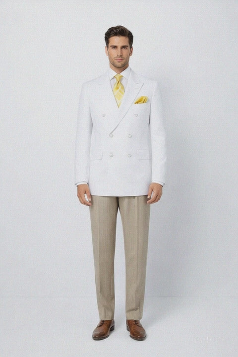 Men’s White Double Breasted Sport Coat – Timeless Classic Fit Blazer