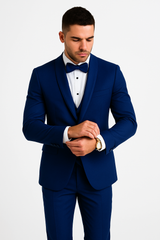 Mens 1 Button Shawl Lapel Vested Wool Wedding - Prom Tuxedo in Bright Sapphire Blue - Mens Slim Fitted Tuxedo