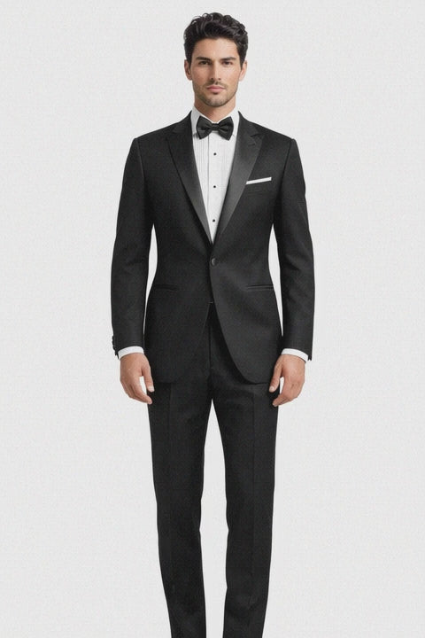 Mens 1 Button Peak Lapel Tuxedo in Black