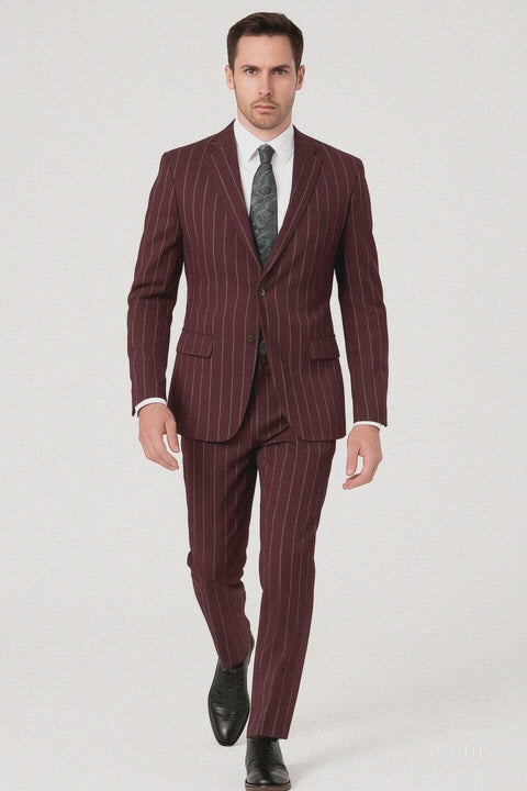 Mens 2 Button Gangster Pinstripe Suit in BLACK / GREY / BURGUNDY
