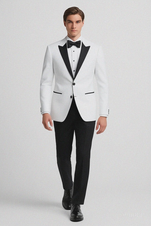 Mens 2 Button Shawl/Peak Hybrid Sharkskin Tuxedo in White