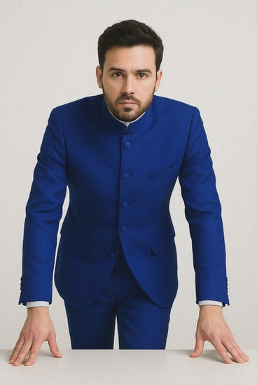 Mens 5 Button Mandarin Collar Tuxedo Suit in Navy