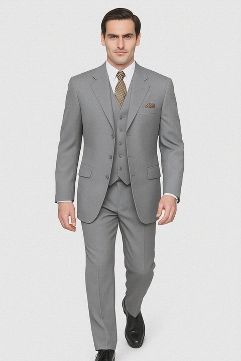This ain't no skinny suit. It's a 6 button closure, wide notch lapel suit. It features a full length zoot suit style jacket, a faint ton on ton shadow stripe material, a ticket pocket, and a matching double breasted vest. The pants are pleated and come in semi-wide leg. The pants come with a six inch drop. That means if you subtract six inches from your jacket size you will determine your pant size. This means if you order a coat size of 42R the pants will be a 36. All pants are tailor adjustable, and can be let out 2 inches or taken in up to 4 inches. So those aforementioned 36W pants can adjust from 32-38. The pants also come unfinished at the bottom, so you can have them hemmed to the perfect length by a tailor or dry cleaner once you receive them.