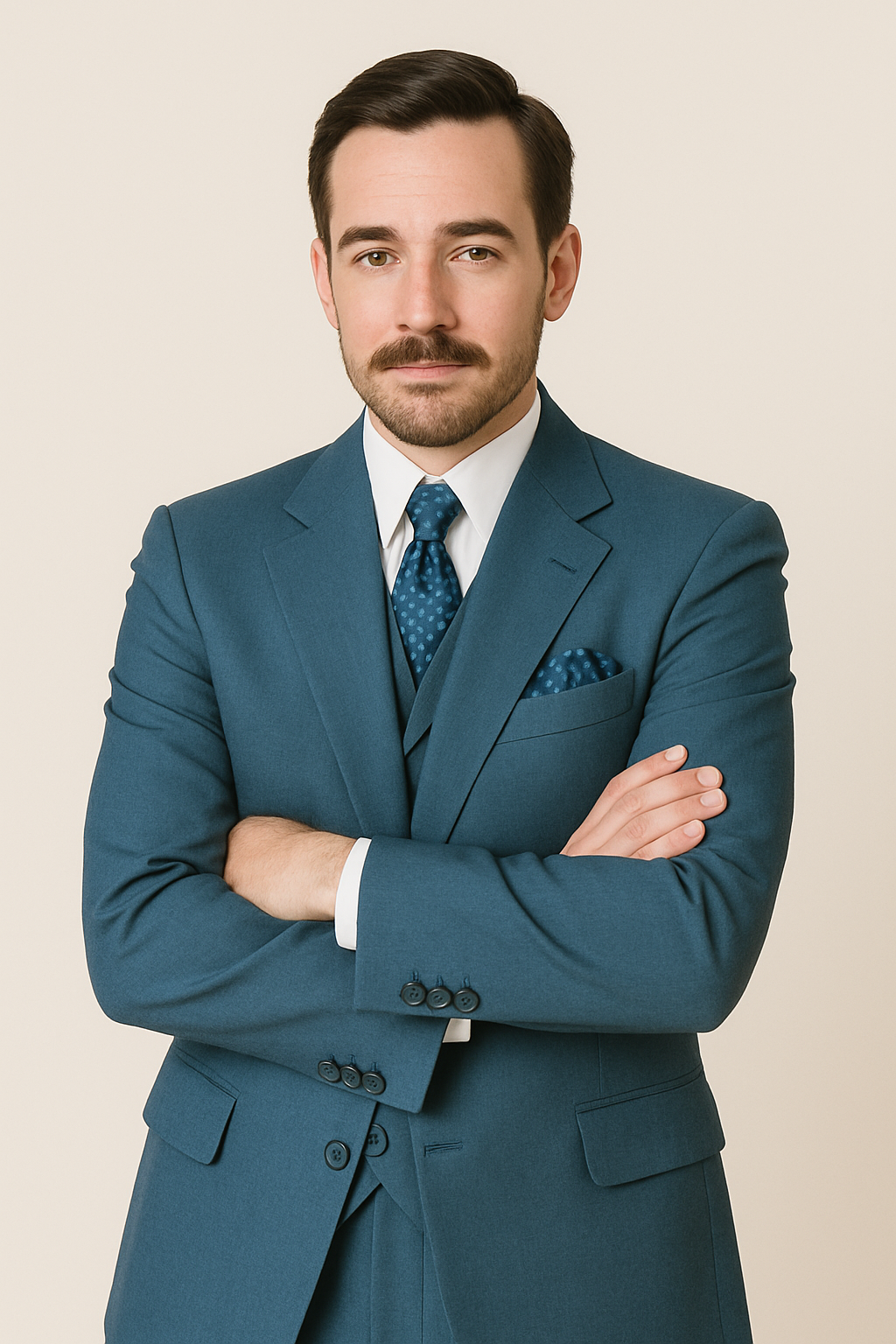 This ain't no skinny suit. It's a 6 button closure, wide notch lapel suit. It features a full length zoot suit style jacket, a faint ton on ton shadow stripe material, a ticket pocket, and a matching double breasted vest. The pants are pleated and come in semi-wide leg. The pants come with a six inch drop. That means if you subtract six inches from your jacket size you will determine your pant size. This means if you order a coat size of 42R the pants will be a 36. All pants are tailor adjustable, and can be let out 2 inches or taken in up to 4 inches. So those aforementioned 36W pants can adjust from 32-38. The pants also come unfinished at the bottom, so you can have them hemmed to the perfect length by a tailor or dry cleaner once you receive them.