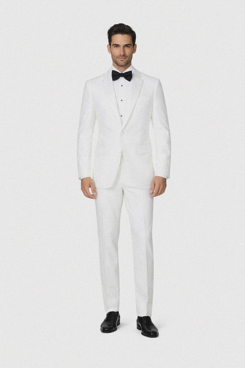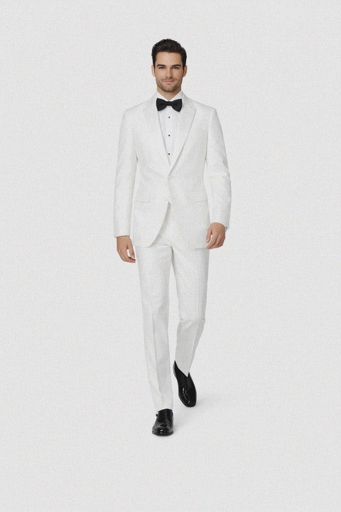 Mens Affordable Slim Fit 2 Button Tuxedo in White - Mens Slim Fitted Tuxedo