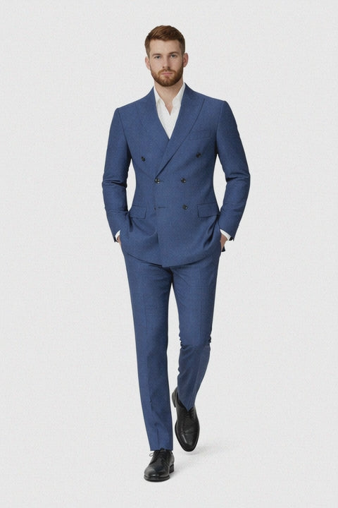 Bold, sophisticated, and timelessly tailored, the Blue Wool Double-Breasted Suit makes a confident statement for the modern gentleman.