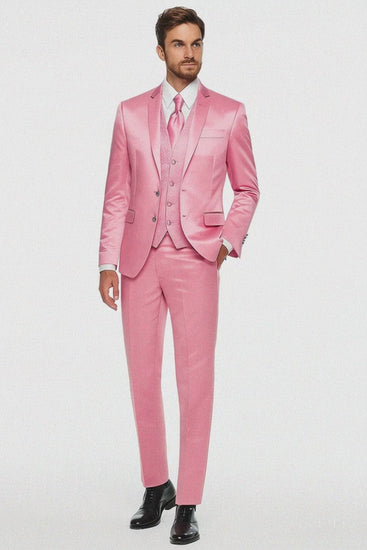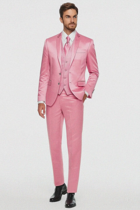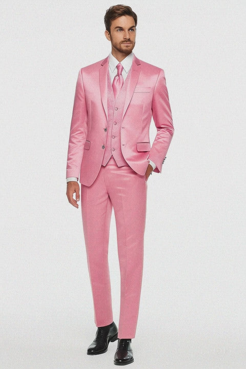 Mens Blush Shiny Blazer - Rose Gold Sateen Vested Suit in Pink Color Jacket Pants Vest