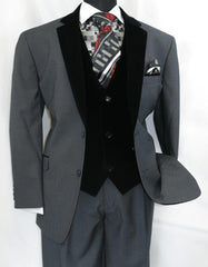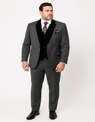 Command attention with this sophisticated Men's Charcoal Gray 3-Piece Suit, a perfect fusion of classic elegance and modern style. Featuring a rich black velvet peak lapel and a sleek matching vest, this tailored ensemble is crafted for the man who appreciates refinement in every detail.