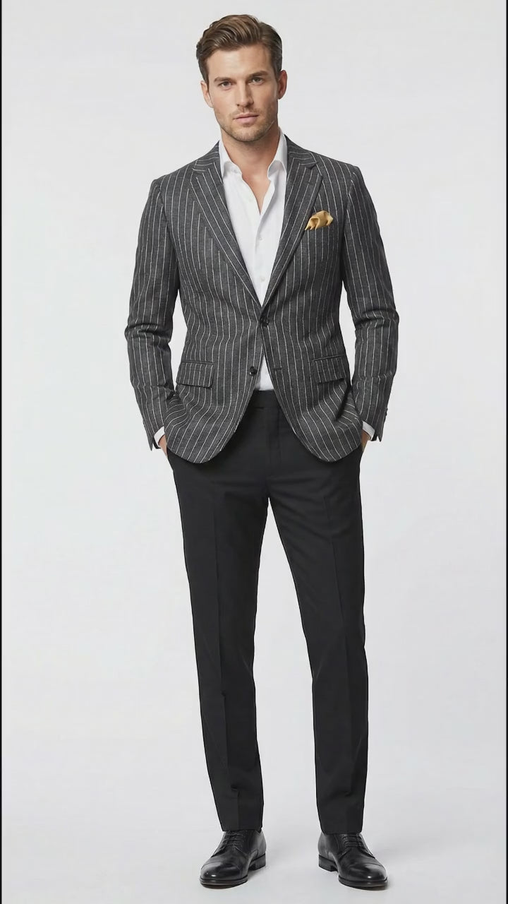 Mens Charcoal Pinstripe Blazer – Classic Tailored Formal Jacket for Business, Office and Evening Wear