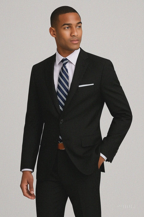 Just because it's affordable doesn't mean it can't look good. This slim fit suit hits all the marks. It's a 2 button closure, flat front pants, side vents. 100% Microfiber.