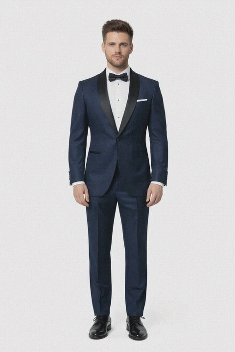 This navy blue Bond-style tuxedo is incredible. The sharp tailoring and sleek design give it a true James Bond vibe, and the modern fit makes it feel current and stylish. I wore it to a formal event and received nonstop compliments all night. — Reid H.