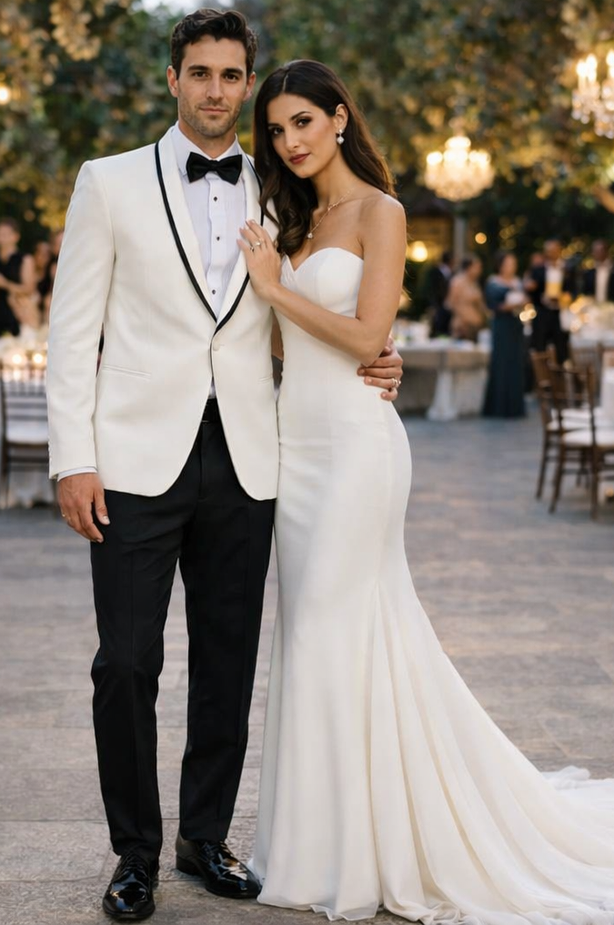 This dinner jacket is simply stunning. The black trim against the ivory fabric gives it that high-fashion tuxedo vibe. The tailoring is precise, the material feels luxurious, and the overall look is classy and sophisticated. It’s perfect for proms, weddings, or red-carpet-style events.
