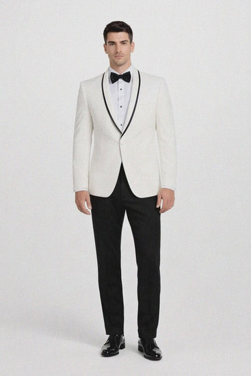 Mens Designer Charles Shawl Dinner Jacket in Ivory with Black Trim