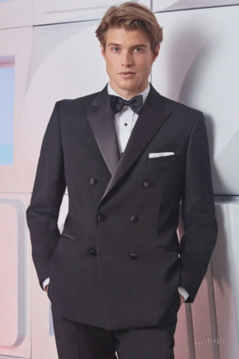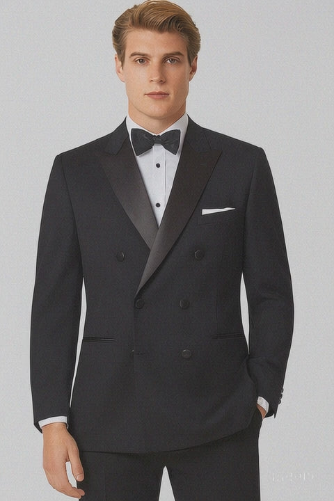 Mens Designer Double Breasted Wool Tuxedo in Black