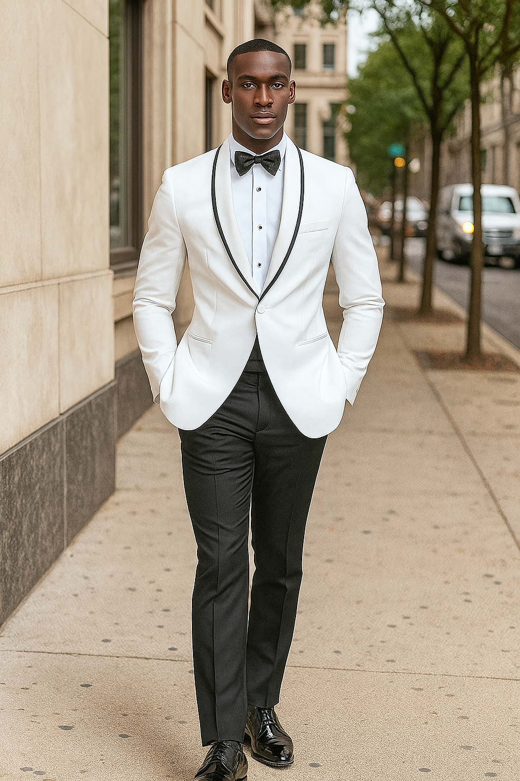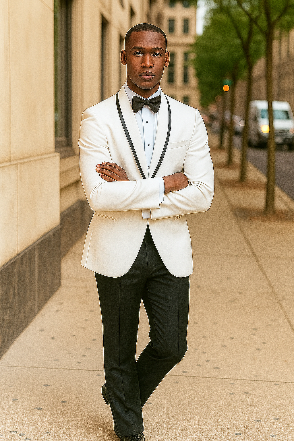 Mens Designer Franklin Wedding - Prom Tuxedo in White Designer Prom Tuxedos