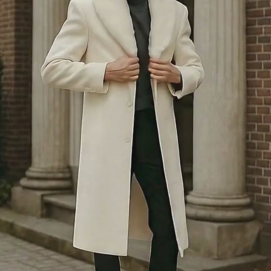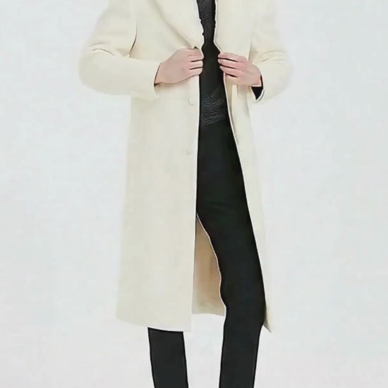 - Elegant Ivory full-length overcoat with premium finish